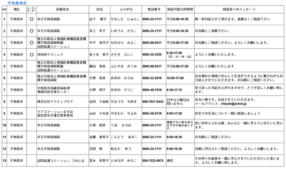 愛媛県のコーディネーター・サポーター お問い合わせ一覧